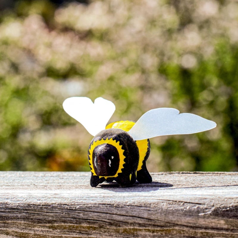 Each bumblebee is meticulously hand-carved from eco-friendly wood and adorned with non-toxic, water-based paint.