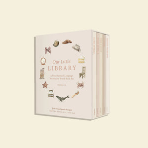 With Our Little Library Vol. 2, you can jump-start your baby's exposure to first words using this beautifully designed board book box set—the perfect gift for newborns and baby showers!
