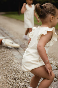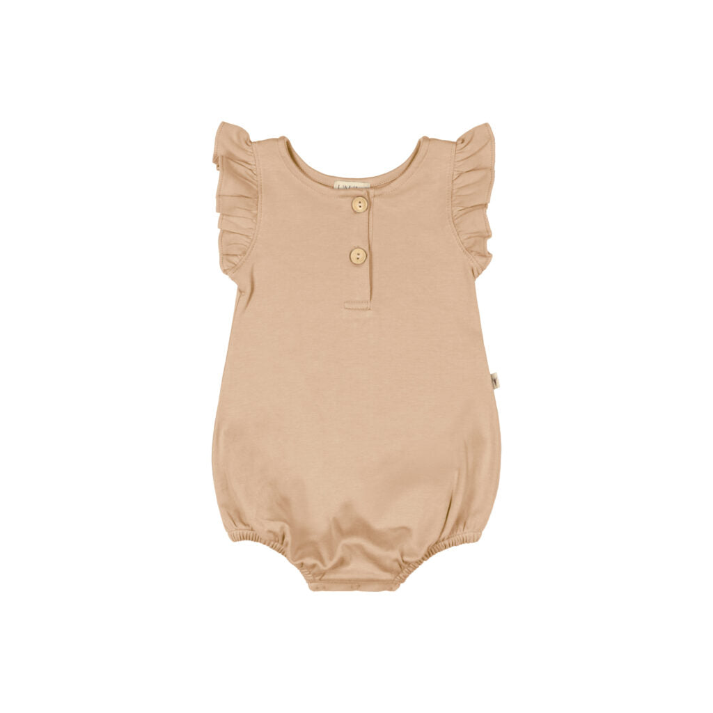 The bubble features detailed ruffles on the shoulders and elastic leg openings to create the cute bubble shape. An essential piece in your little one’s wardrobe.