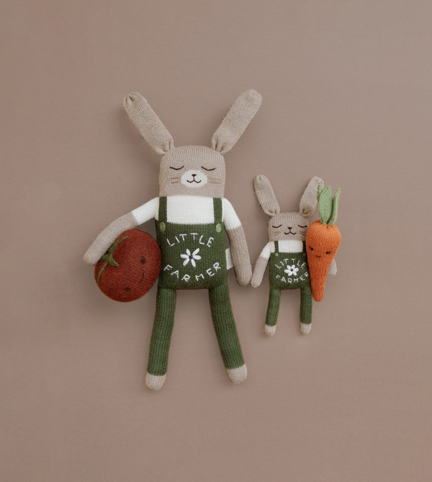 With his dark green overalls and delicate floral embroidery, Elliot is the sweetest little farmer in the garden. Always curious, he loves watching flowers grow and taking care of his plants. Between harvests, he always finds time for a cuddle or a nap in the sun. Hand-knitted from 100% baby alpaca wool, he is incredibly soft and perfect for delicate little ones.