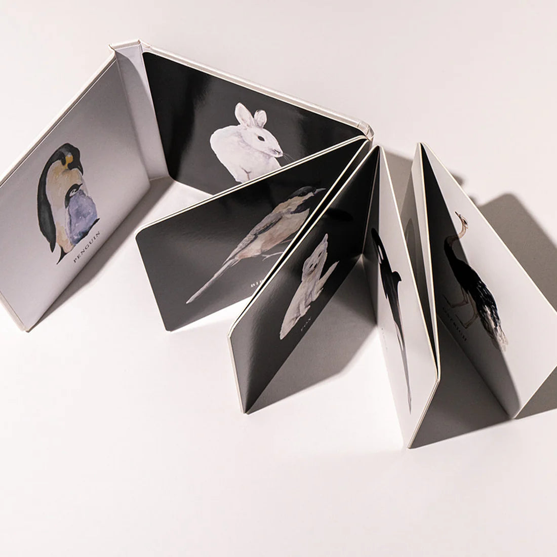This black-and-white book features beautiful fine art that is specially designed for a baby’s visual development. Plus, the accordion-style format means the book stands upright and is perfect for tummy time!